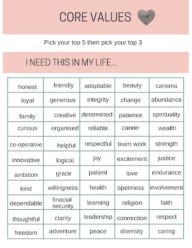 So what exactly are core values? Values are descriptions of your character, what you are like, and how you behave. Core values hold strong no matter what, especially in times of high stress or difficult situations. Values are like your personal GPS, they help guide you through your decision to live the life you want.