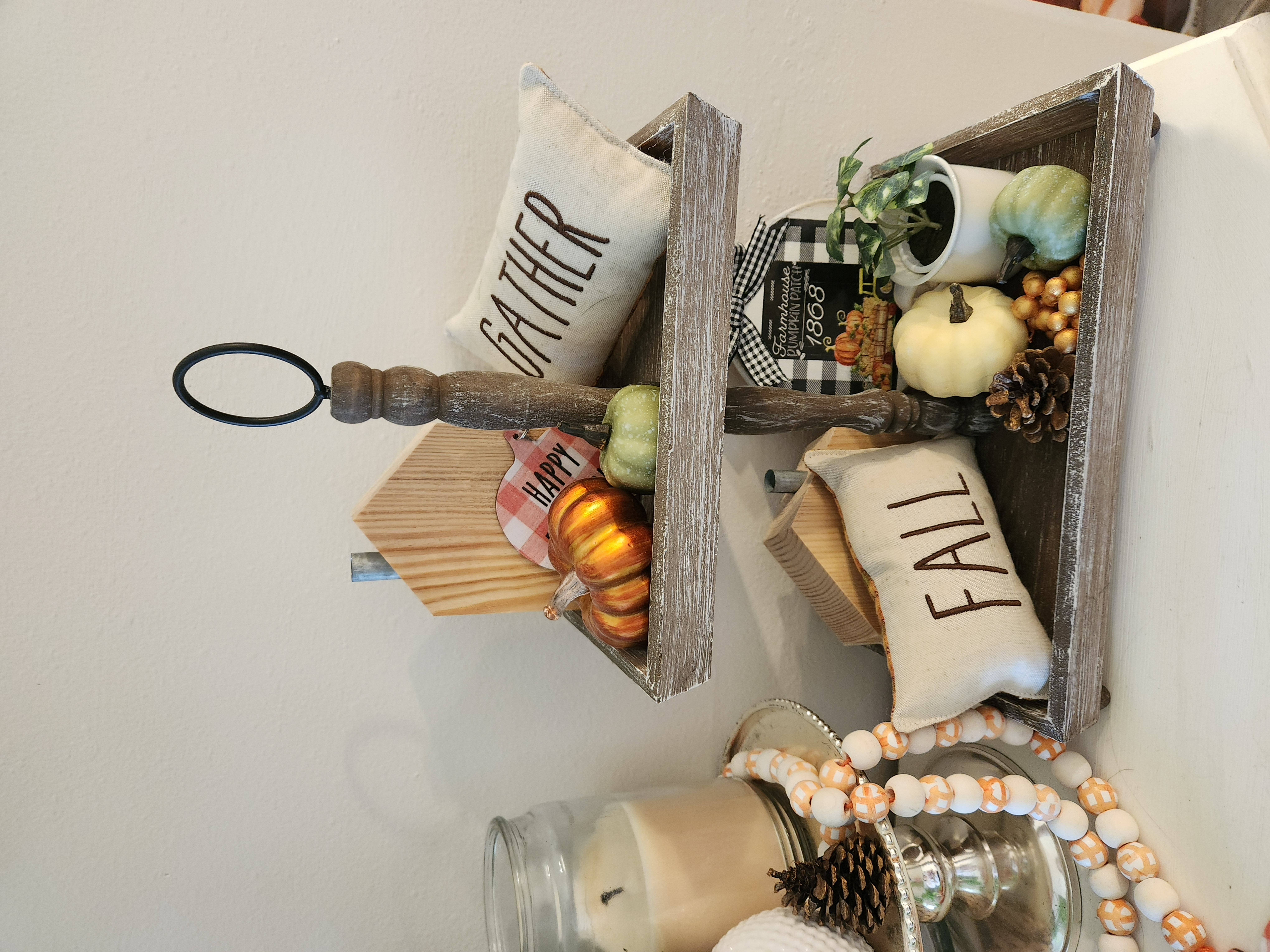 I just recently took down my large shelf and got rid of my all the rest of my shelves and cabinets - and now I have nowhere but this tiny side table for my rotating decor. So, I had to go small. I started dreaming up some new decor for the holidays, and mini pillows...